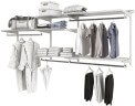 Гардеробная система Титан GS 350S - готовое решение для вашей гардеробной комнаты. Система собирается в 5 разных конфигурациях, что позволяет подстраивать ее под размеры помещения и ориентироваться на личные пожелания по расположению отдельных элементов. В комплект входят несущие рельсы и навесные направляющие, полки, штанги, аксессуары, крепежные элементы. Можно докупить множество дополнительных компонентов для гардеробной системы.