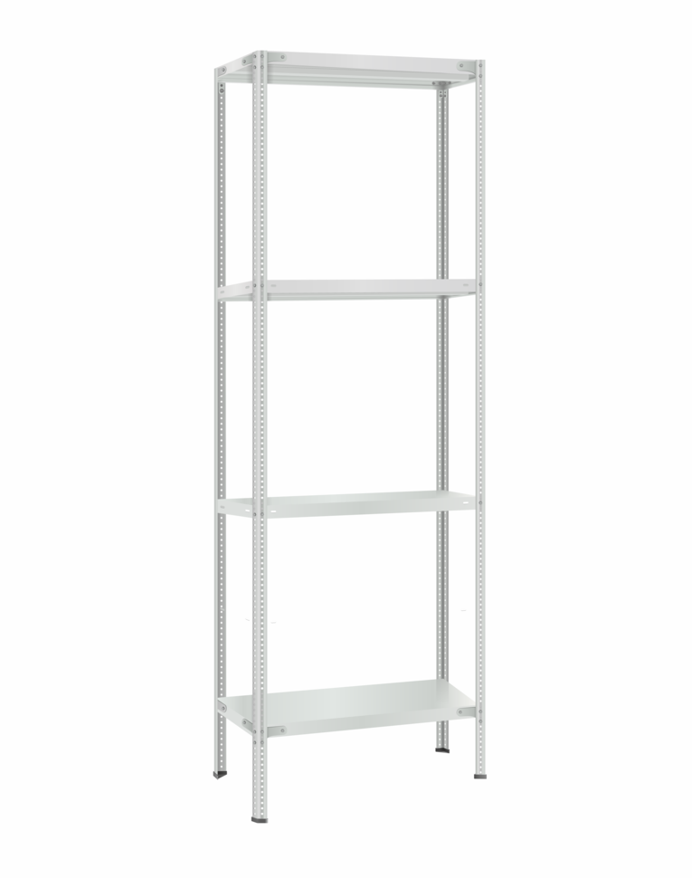 Полки МС Титан изготовлены из высокопрочной стали, покрыта полимерным порошковым покрытием светло серого цвета RAL 7035 типа шагрень